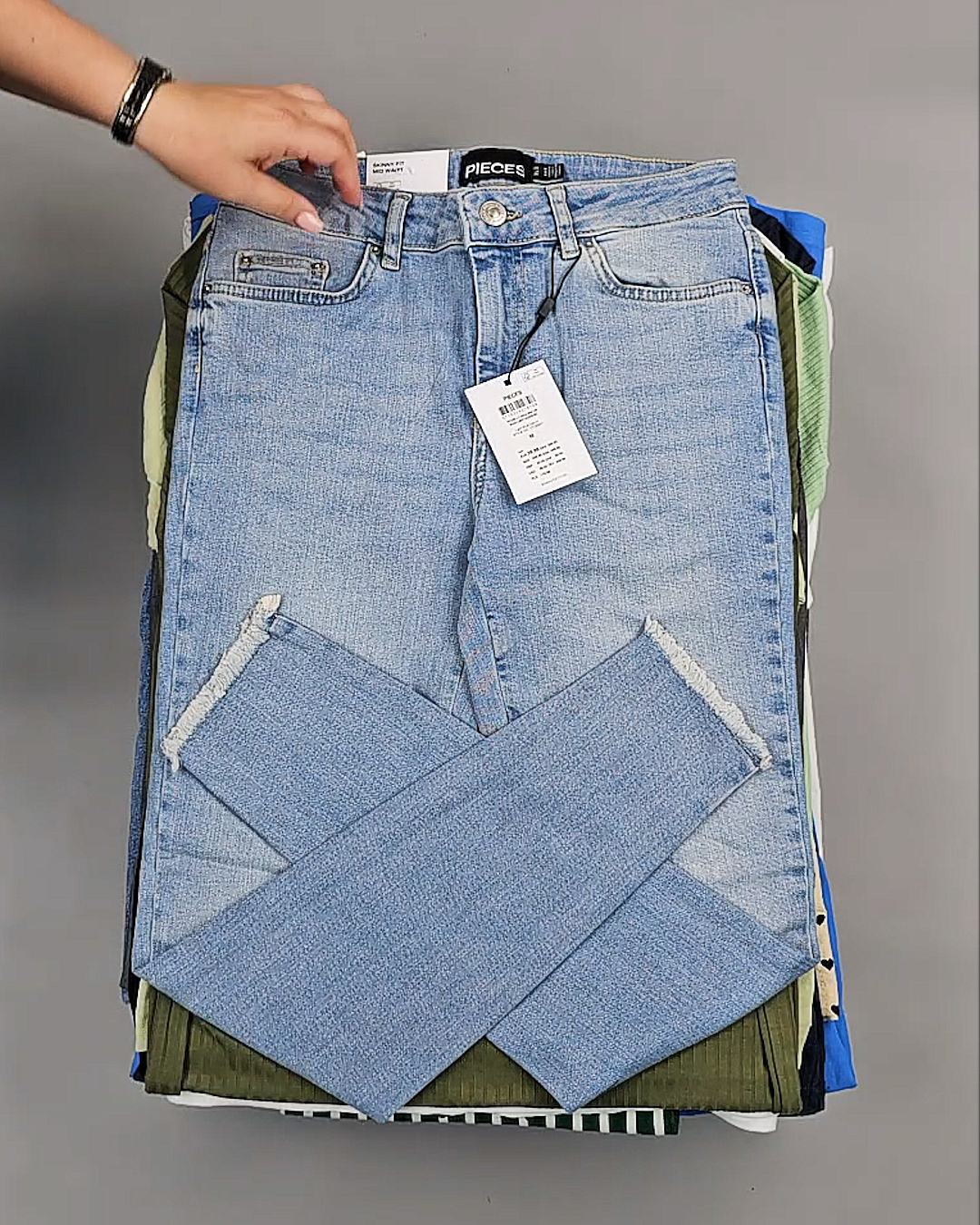 Среди нашего ассортимента всегда в наличии Сток в количестве более 450 тонн. Каждую неделю новые привозы из Европы, в том числе источником оптовых поставок бренда PIECES является ДАНИЯ.